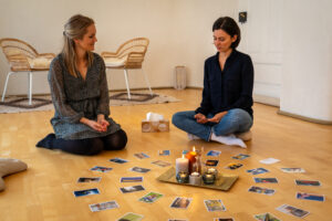 - einem von mir vorbereiteten Teil mit Impulsen, Übungen in der Gruppe oder in der Stille (Schreiben, Körper- oder Atemübungen).